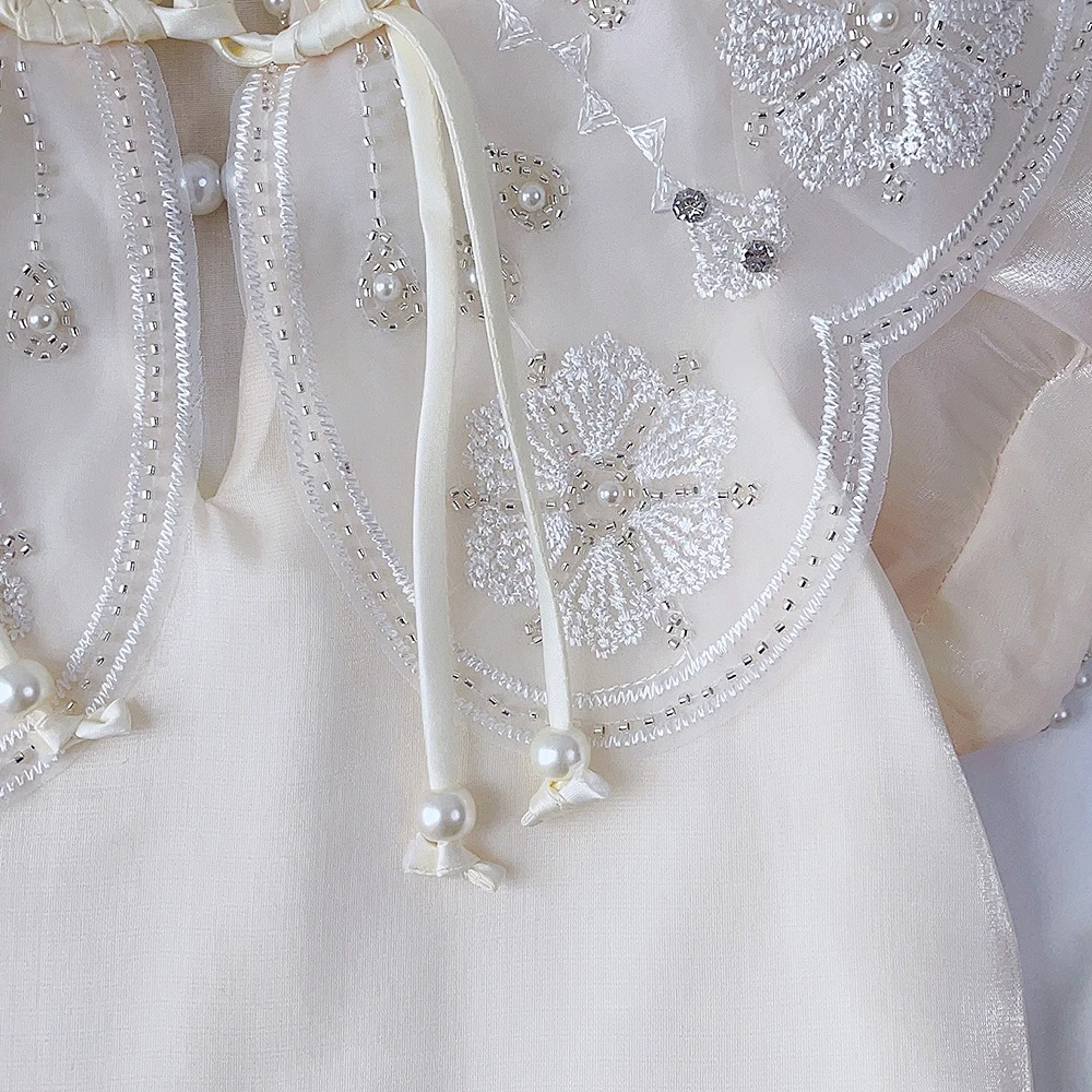تزيين لؤلؤ ناعم يبرز جمال الفستان.