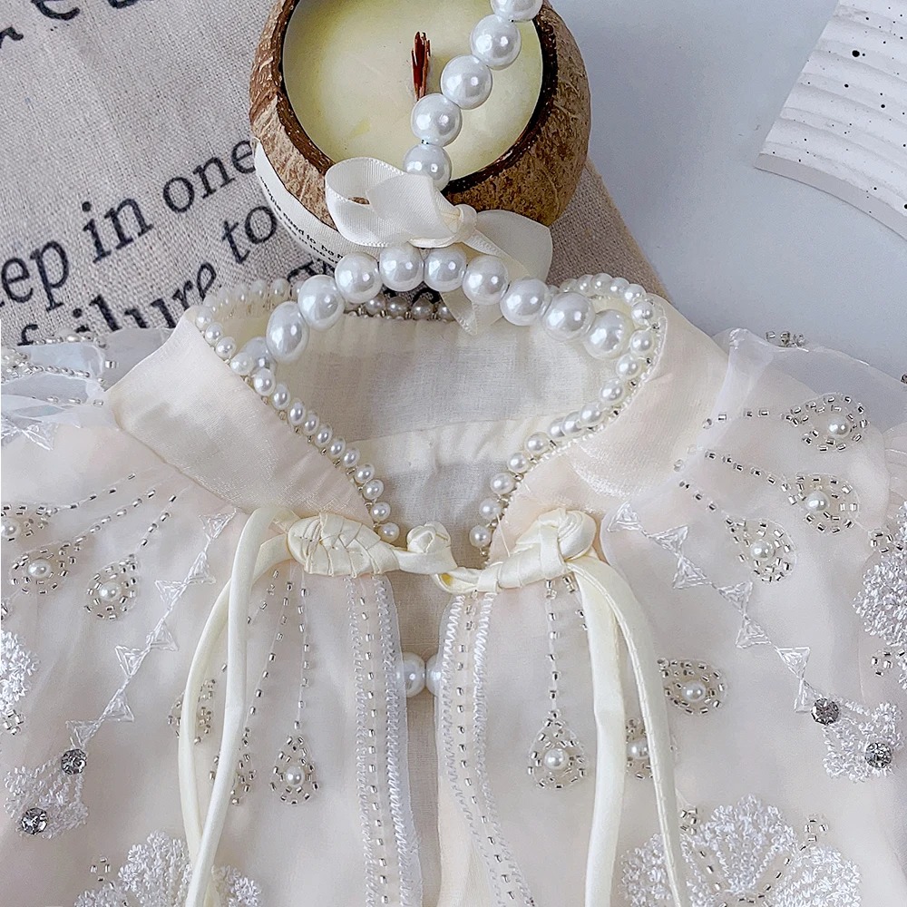فستان بناتي صيفي مرّة أنيق من Bear Leader، جاي بتصميم تشيباو صيني لمسة فخمة وناعمة. الفستان شبكي ومرصّع بلؤلؤ يعطيه شكل راقي للبنوتة، وقصّته خفيفة ومريحة للّبس اليومي أو المناسبات.